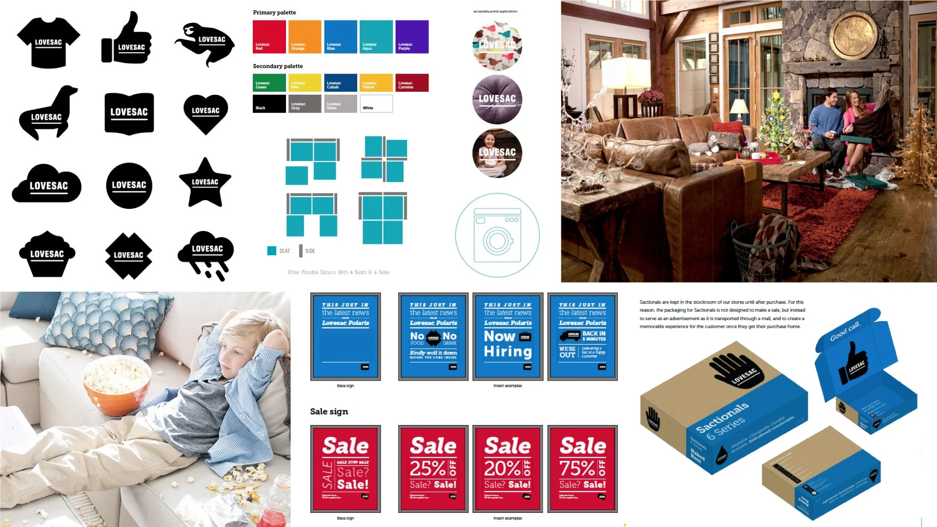 Creating a thread from product to visual system to space is a brand that is in control. We were able to translate the founder's passion to life and created a tailor-made shopping experience for their brand. They implemented the new visual system nationwide, and stores looked like our rendering came to life. As a final handoff, we delivered a brand book proportionally sized as one of the Sactional bases. The Lovesac brand is thriving, inviting new investors and collaborators to join the party. They even have commercials playing on prime time!