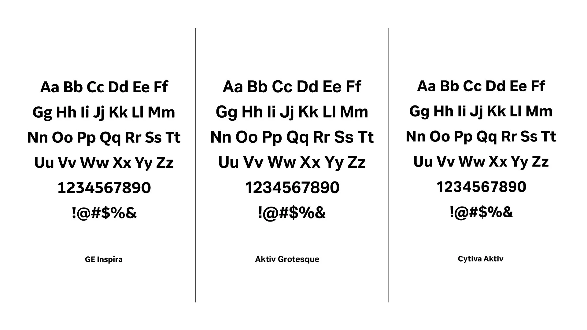 Above is a comparison of the original typeface, out-of-the-box type from Dalton Maag, and the customized version for Cytiva