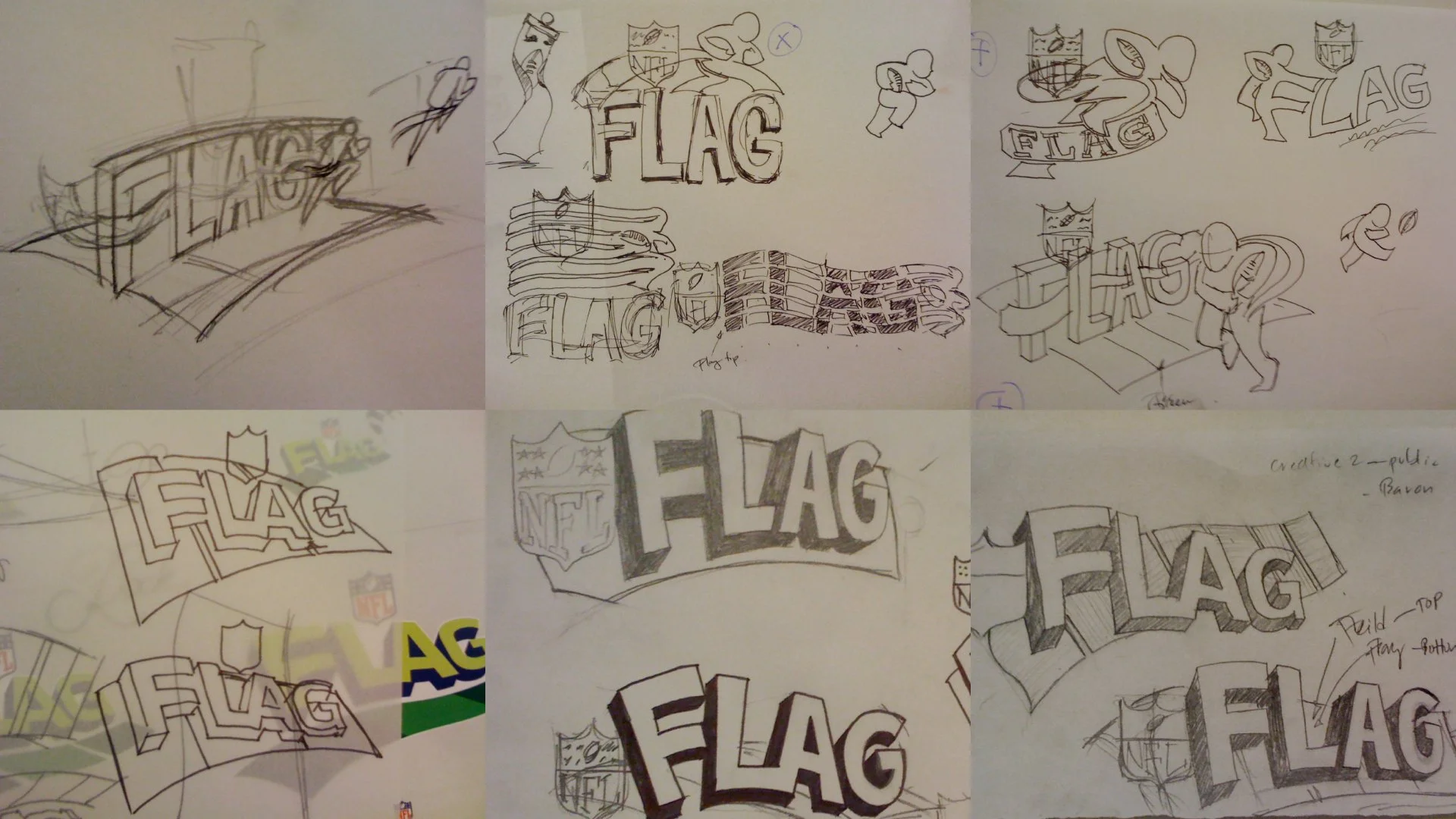 The project started with the NFL Flag football as its is one of their most prominent event outside the professional sports. They want the logo to reflect the NFL brand while taking some qualities of the program and giving it its personality.
